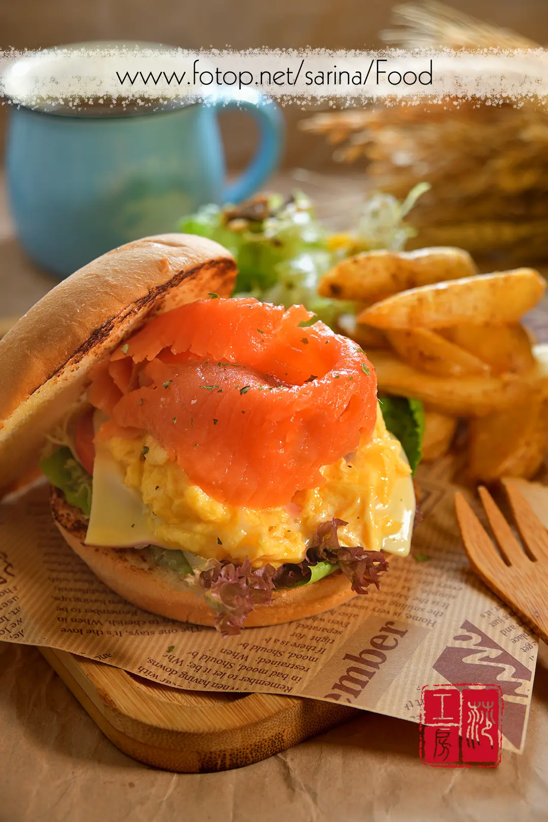Salmon Egg tomato Bagel and wedges