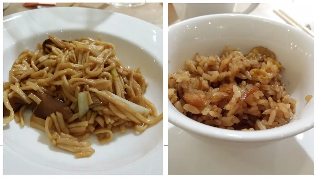 蟹肉伊府麵 Braised E-Fu Noodles with Crab Meat 和 福建炒香苗 Fried Rice with Fukin Style