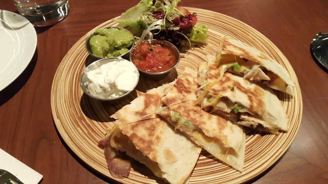 雞肉墨西哥烤餅配酸忌廉、牛油果醬、蕃茄莎莎