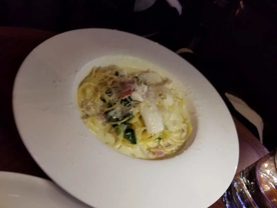 墨魚柳BB菠菜芝士煙肉忌廉汁意粉