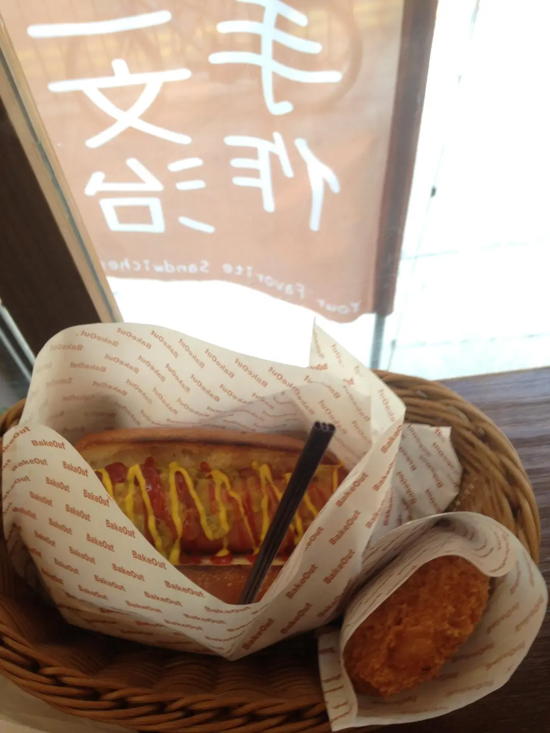 hot dog (which the Sausage and the bun, weren't hot enof), potato cake