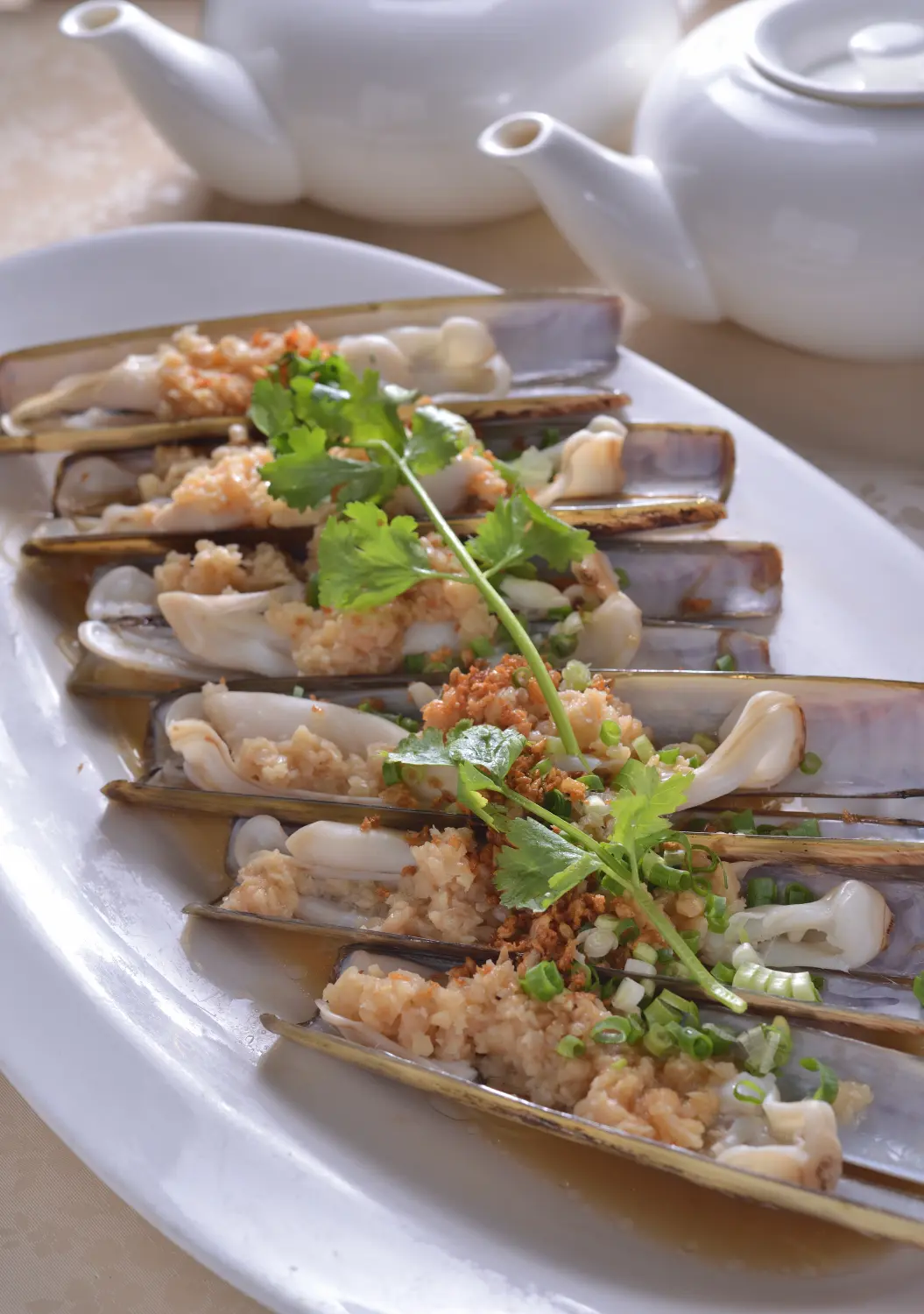 蒜蓉粉絲蒸特大蟶子皇 Steamed extra large razor clams with garlic vermicelli