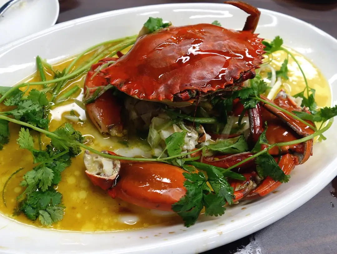 花雕蛋白雞油蒸肉蟹