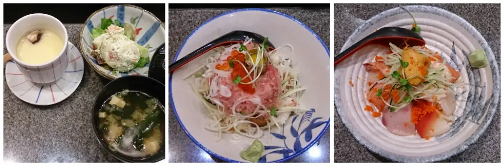 海膽什錦魚生飯($86)、三文魚籽蔥吞拿魚腩蓉飯定食($79)