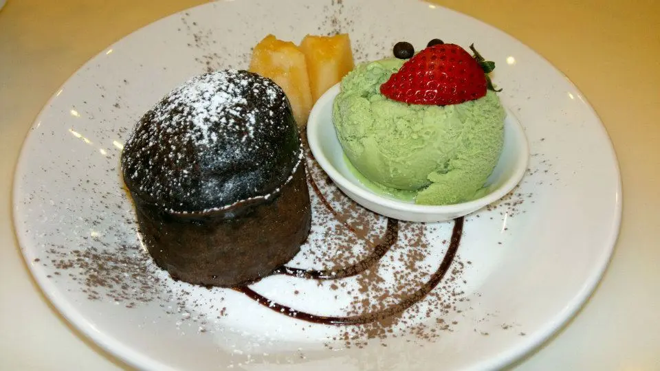心太軟綠茶雪糕---清香的綠茶雪糕加上暖烘烘的朱古力的心太軟產生一暖一凍產生特別的對比口感