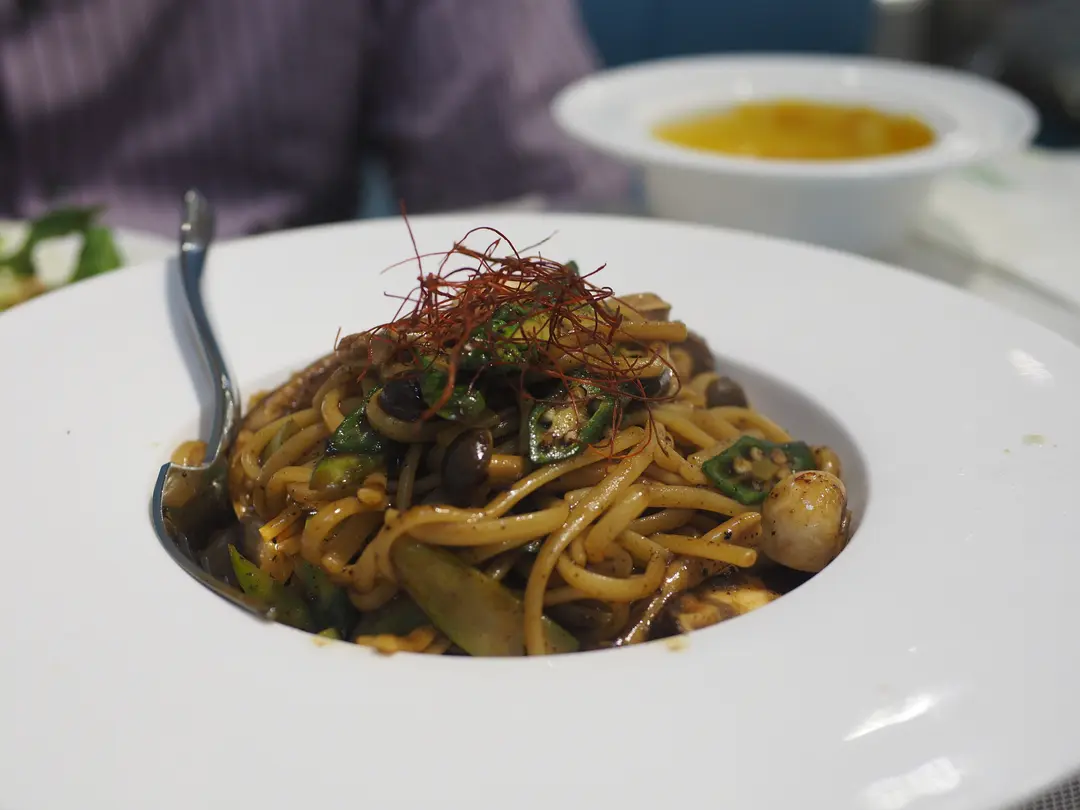 stir fried okra and mushroom linguine