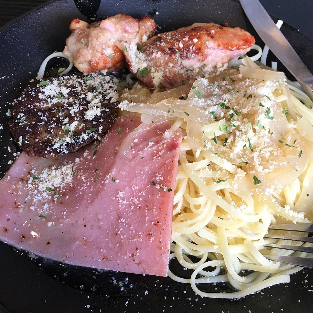 午餐:雞翼火腿漢堡扒意粉