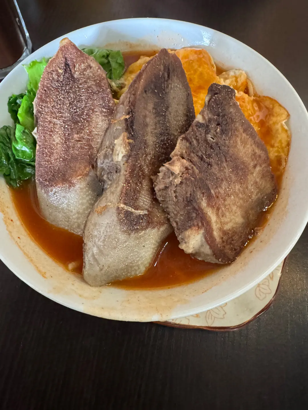 煎牛脷煎蛋蕃茄湯意粉