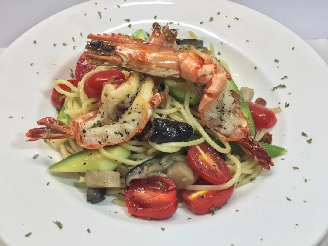 香煎大蝦意粉配野菌及香蒜