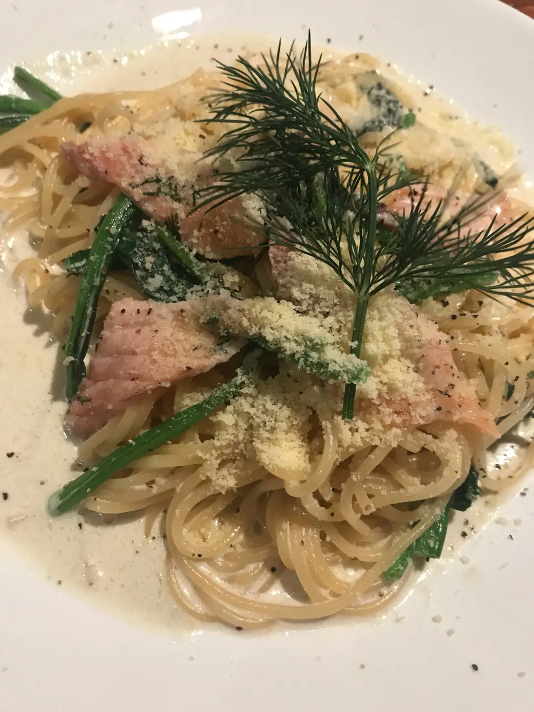 菠菜三文魚意粉