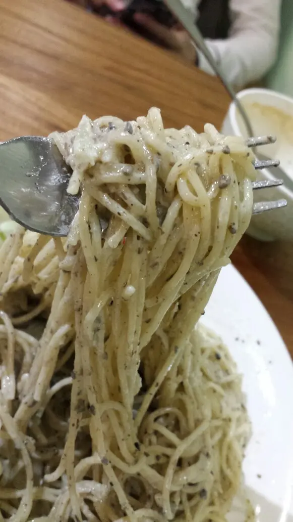 黑松露煙三文魚忌廉汁天使麵