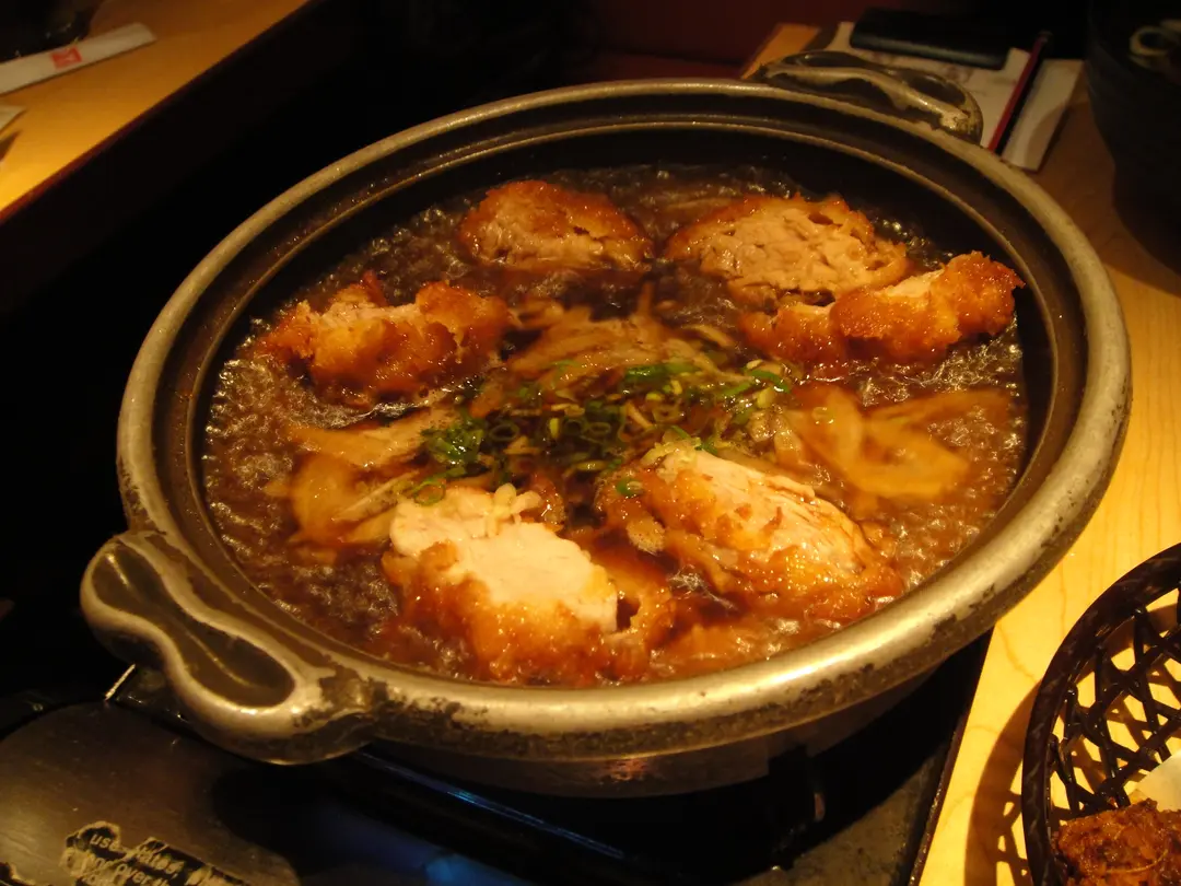 慢火燒的炸豬扒浸在蘿蔔汁上,使蘿蔔滲入豬扒肉內