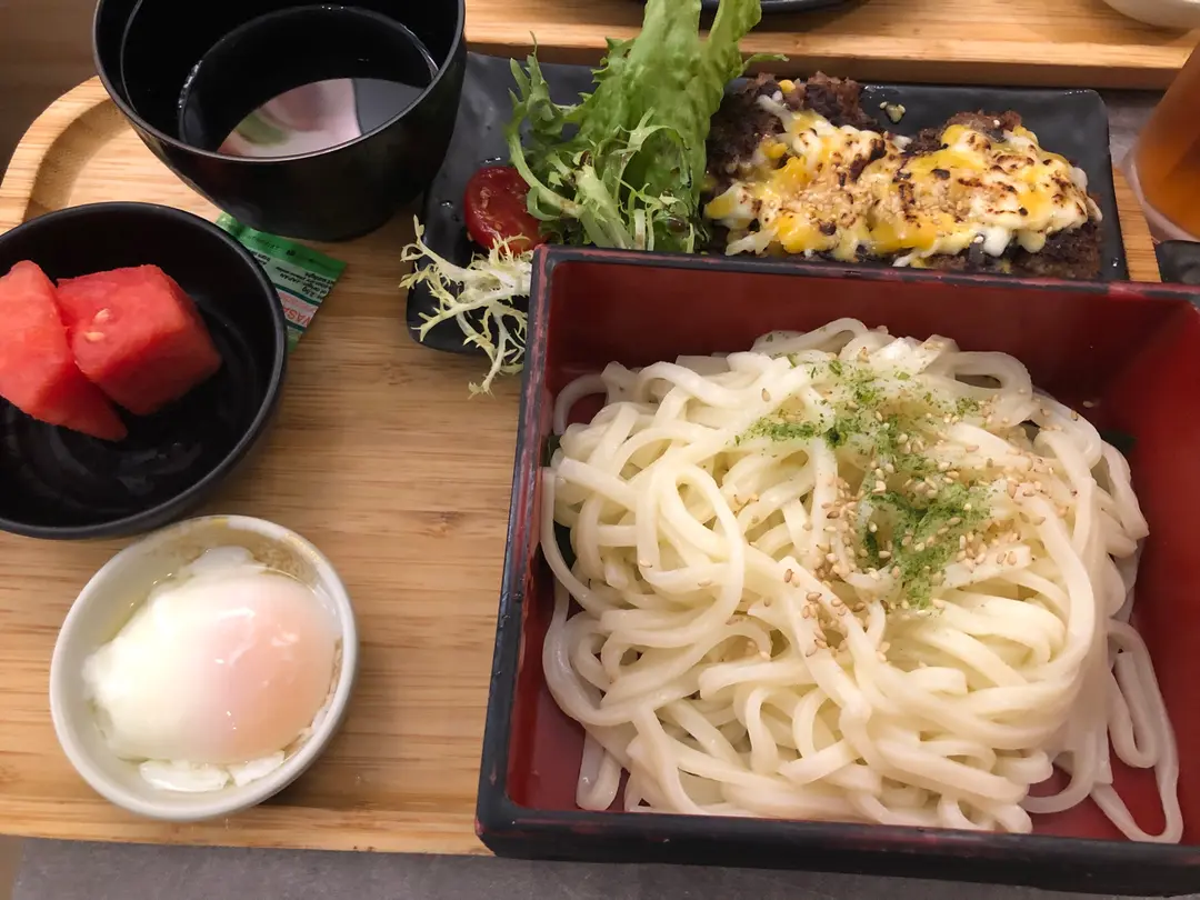 芝士漢堡扒定食配烏冬