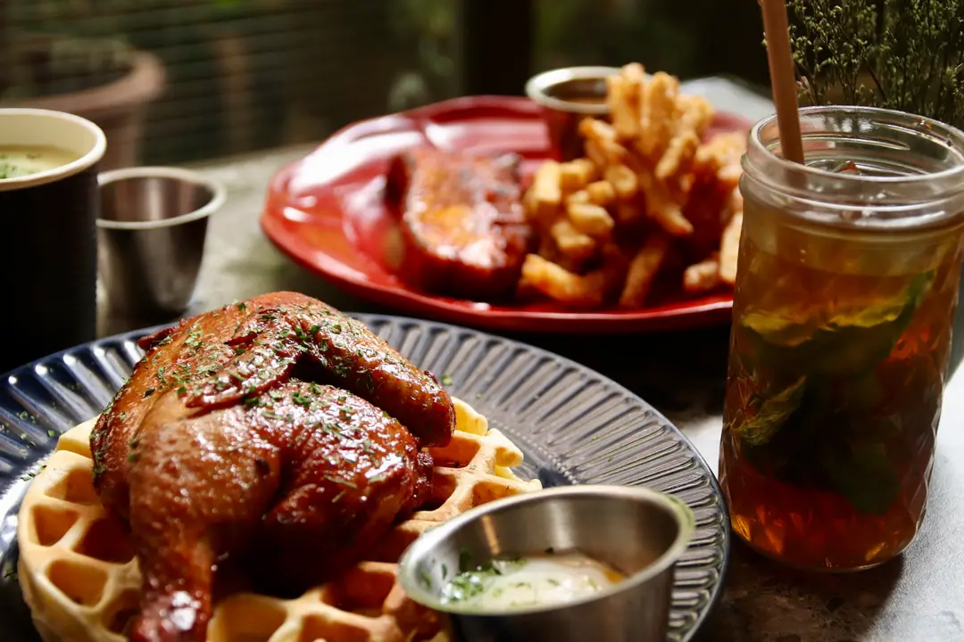 烤法國春雞半隻, 溫泉蛋, 窩夫