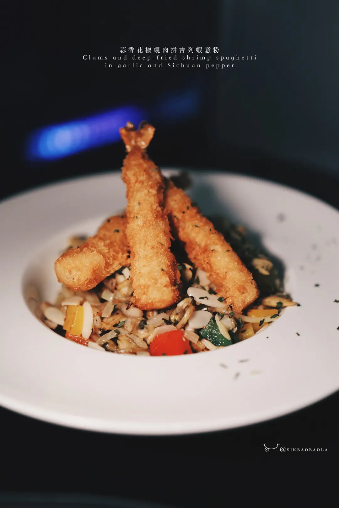 蒜香花椒蜆肉拼吉列蝦意粉