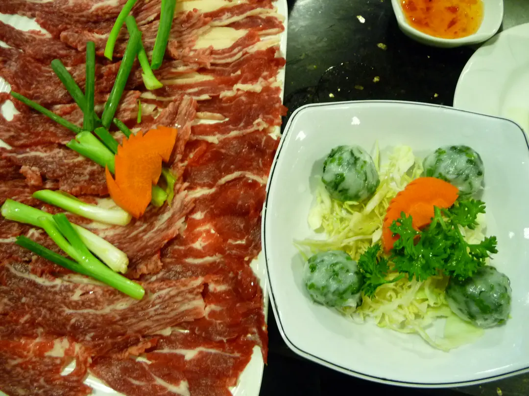 手切牛肉和西洋菜墨魚丸