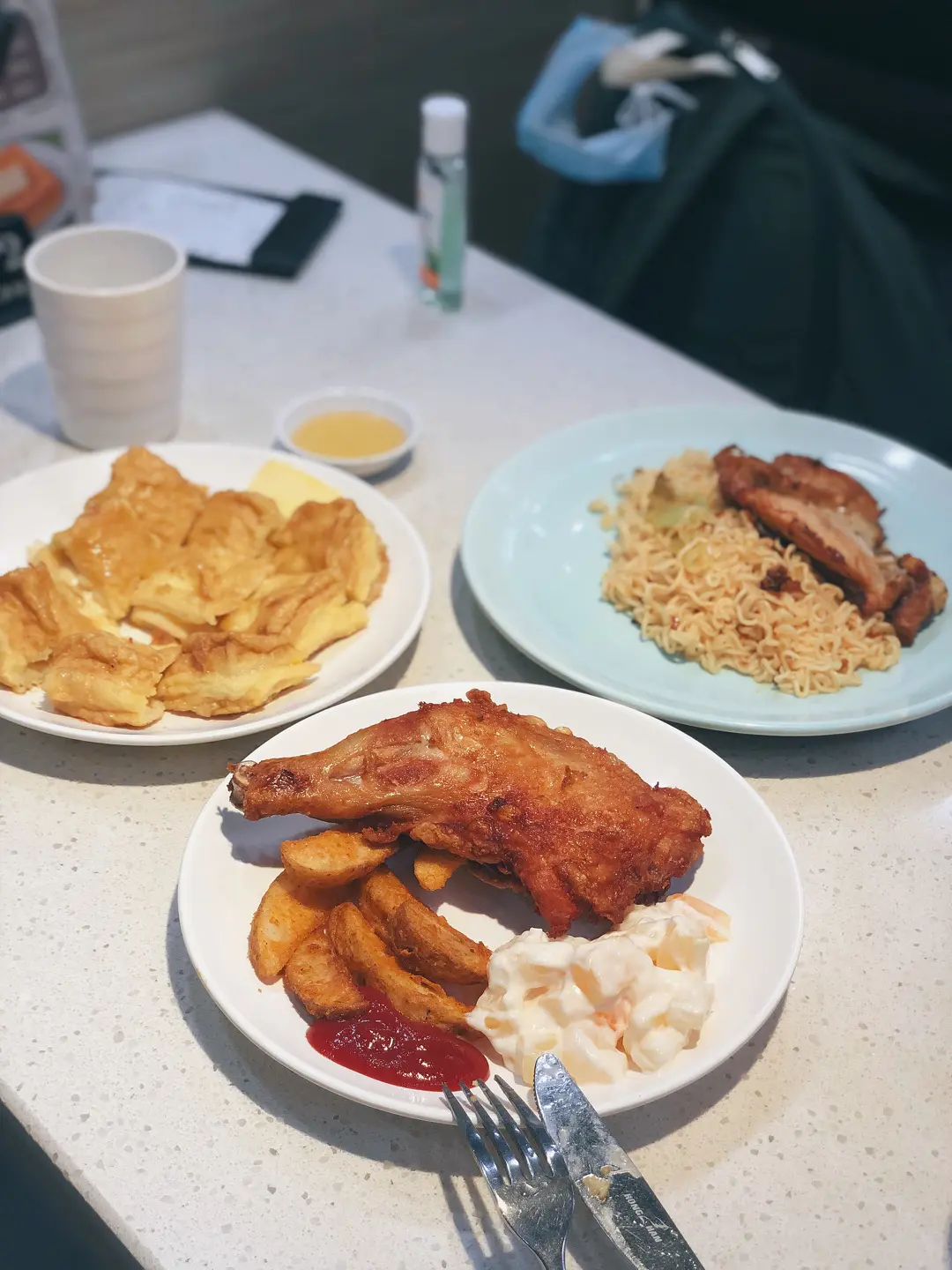 雞髀拼沙律薯角及凍飲品🍗