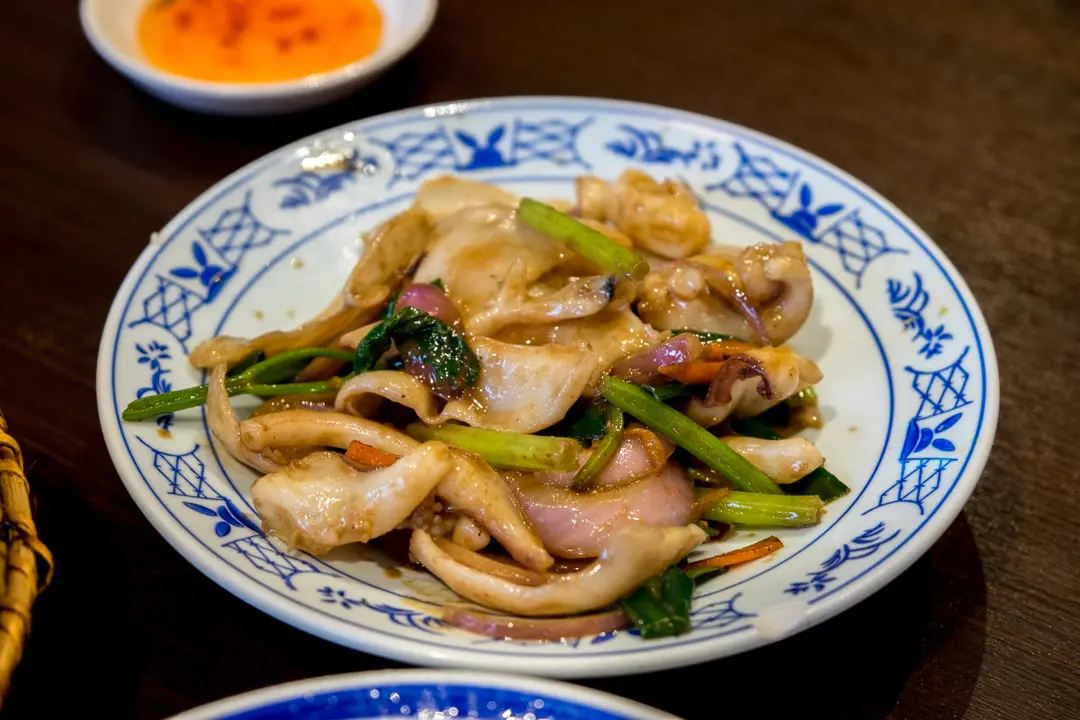Stir fried squid with shrimp paste