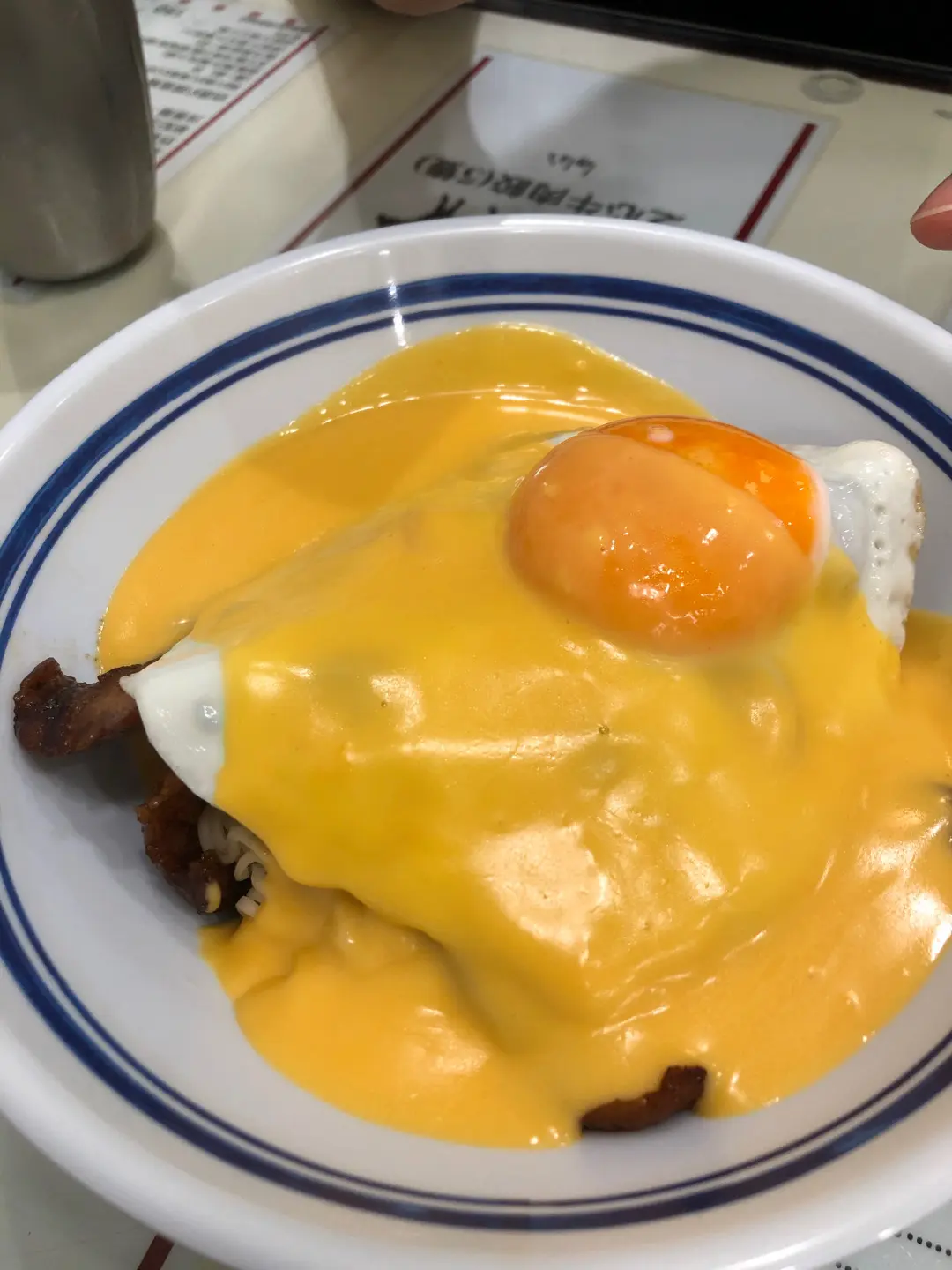 芝士汁豬頸肉煎蛋撈麵