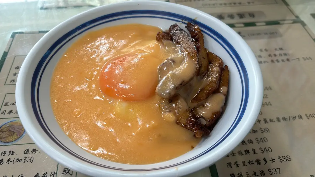 芝士豬頸肉煎蛋撈公仔麵