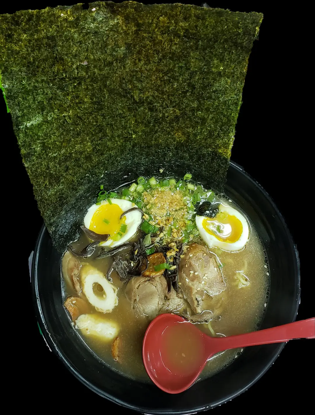 黑蒜油叉燒拉麵 (唔好意思, 因為影到啲雲吞所以cut走左)