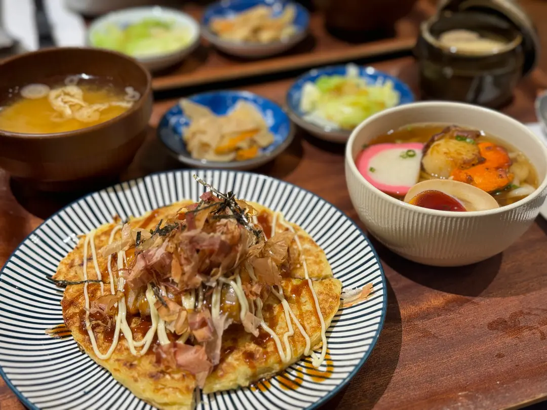 塩燒三文魚山藥燒配醬油溏心蛋帆立貝湯烏冬