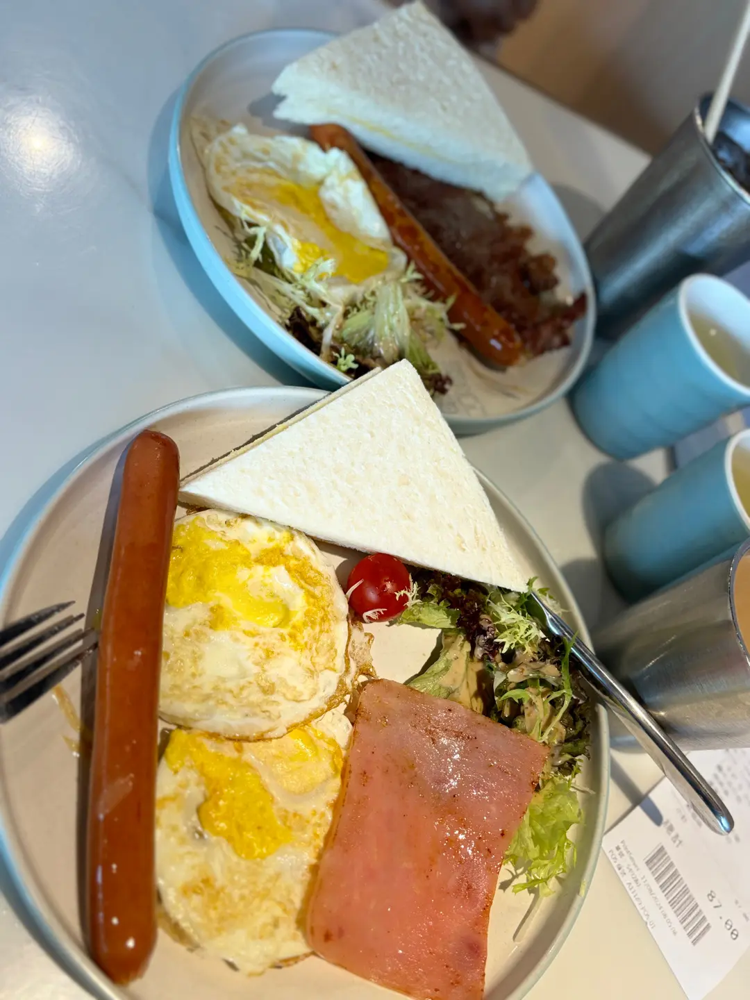 早餐-煎雙蛋+法蘭克福腸