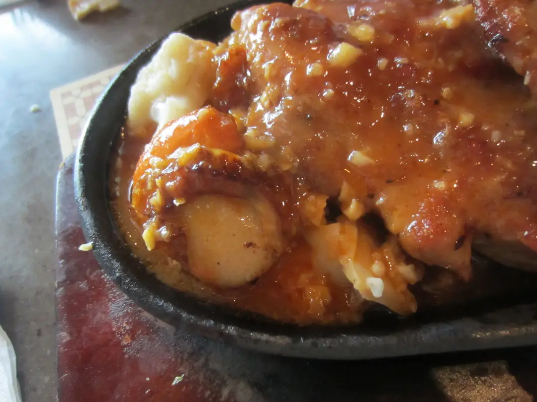 日本帶子伴美國雞扒配白菌蒜蓉汁