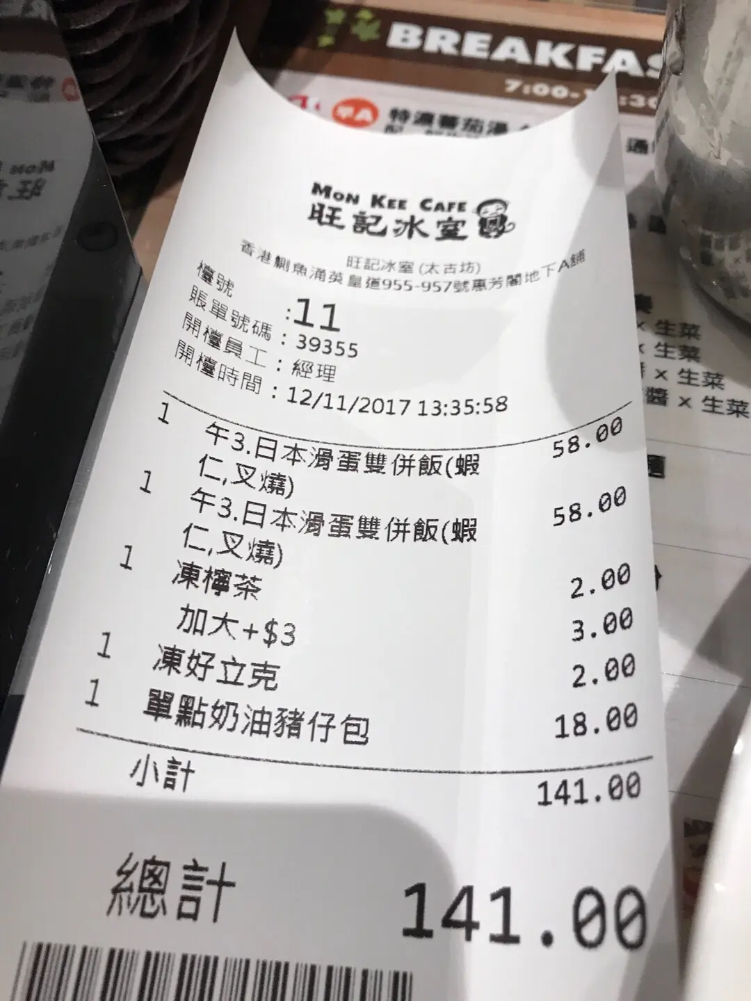 | 餐厅: | 旺記冰室 (惠芳閣) |