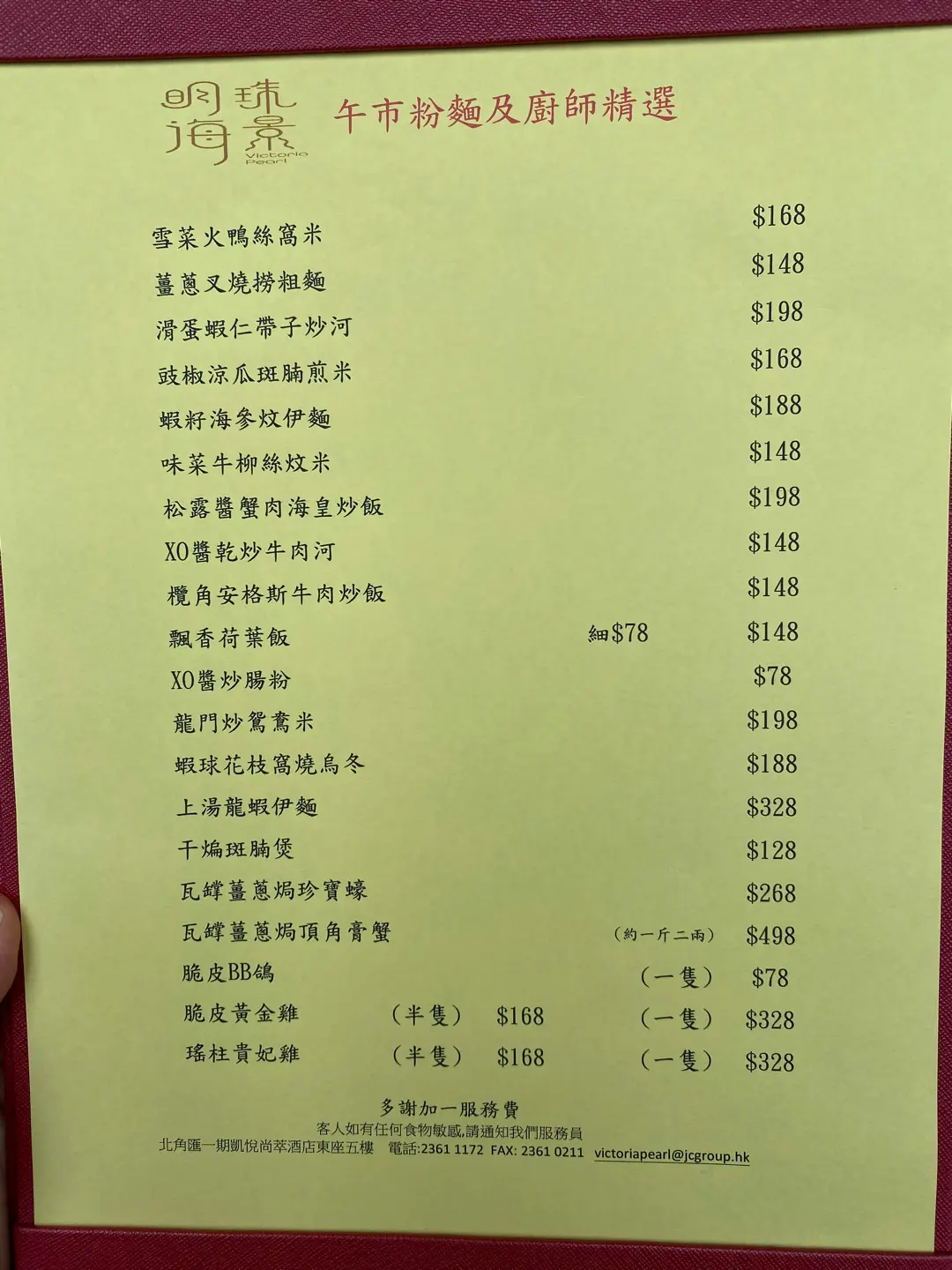 餐厅: | 明珠海景 |
