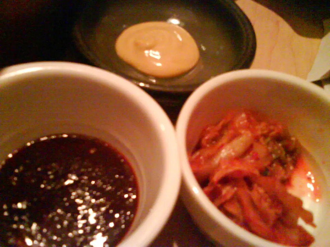 最上的黃芥茉, 左下的辣醬, 右下的泡菜