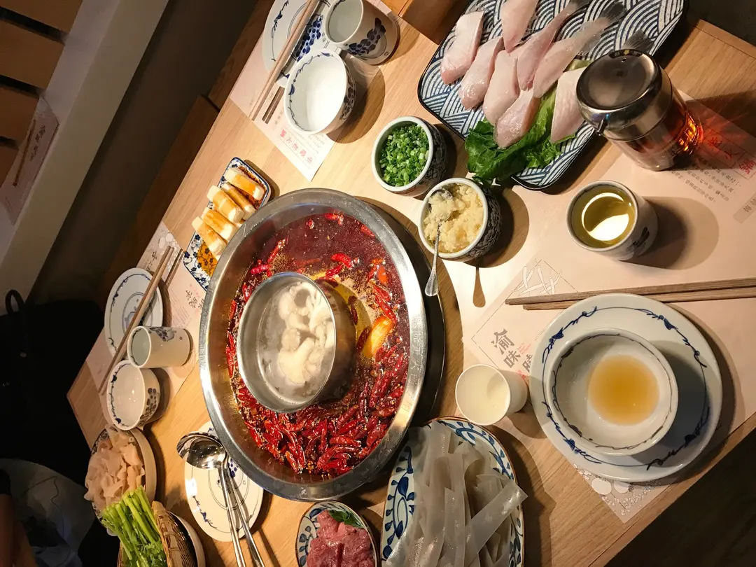 鴛鴦鍋:稻田毛肚(黑牛百頁)、鮮黃喉、嫩牛肉、極品鵝腸、曉宇苕粉、耗魚件、紅糖恣粑、皇帝菜、啤酒一渣。