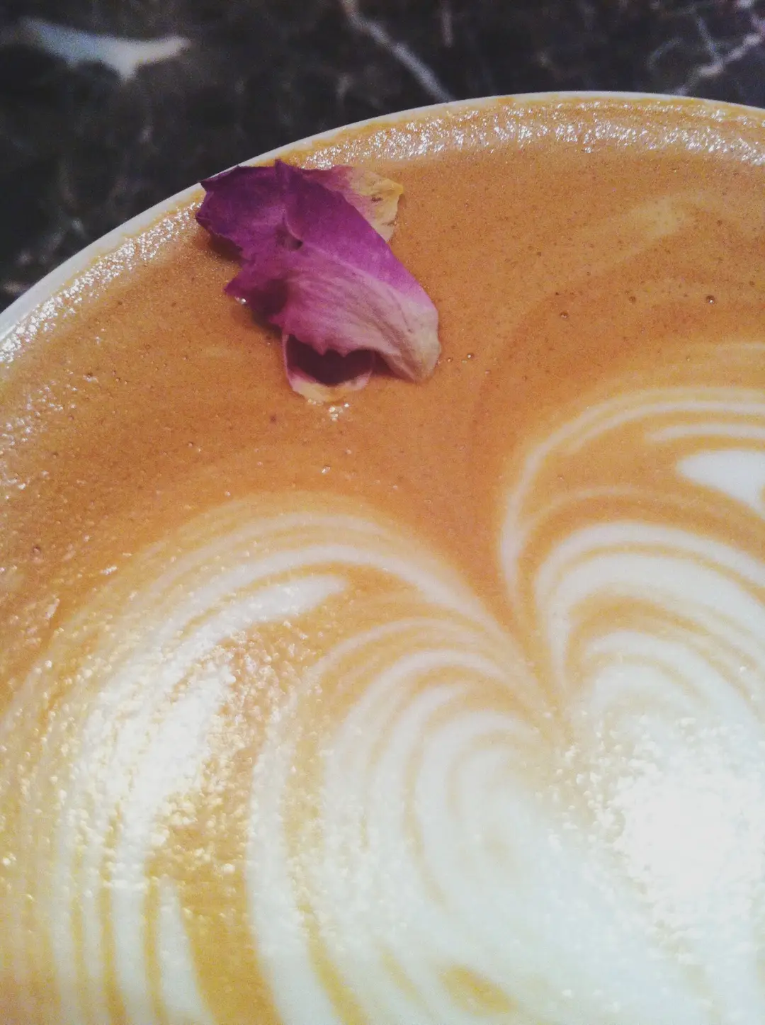 Decaf half-skimmed milk rose latte