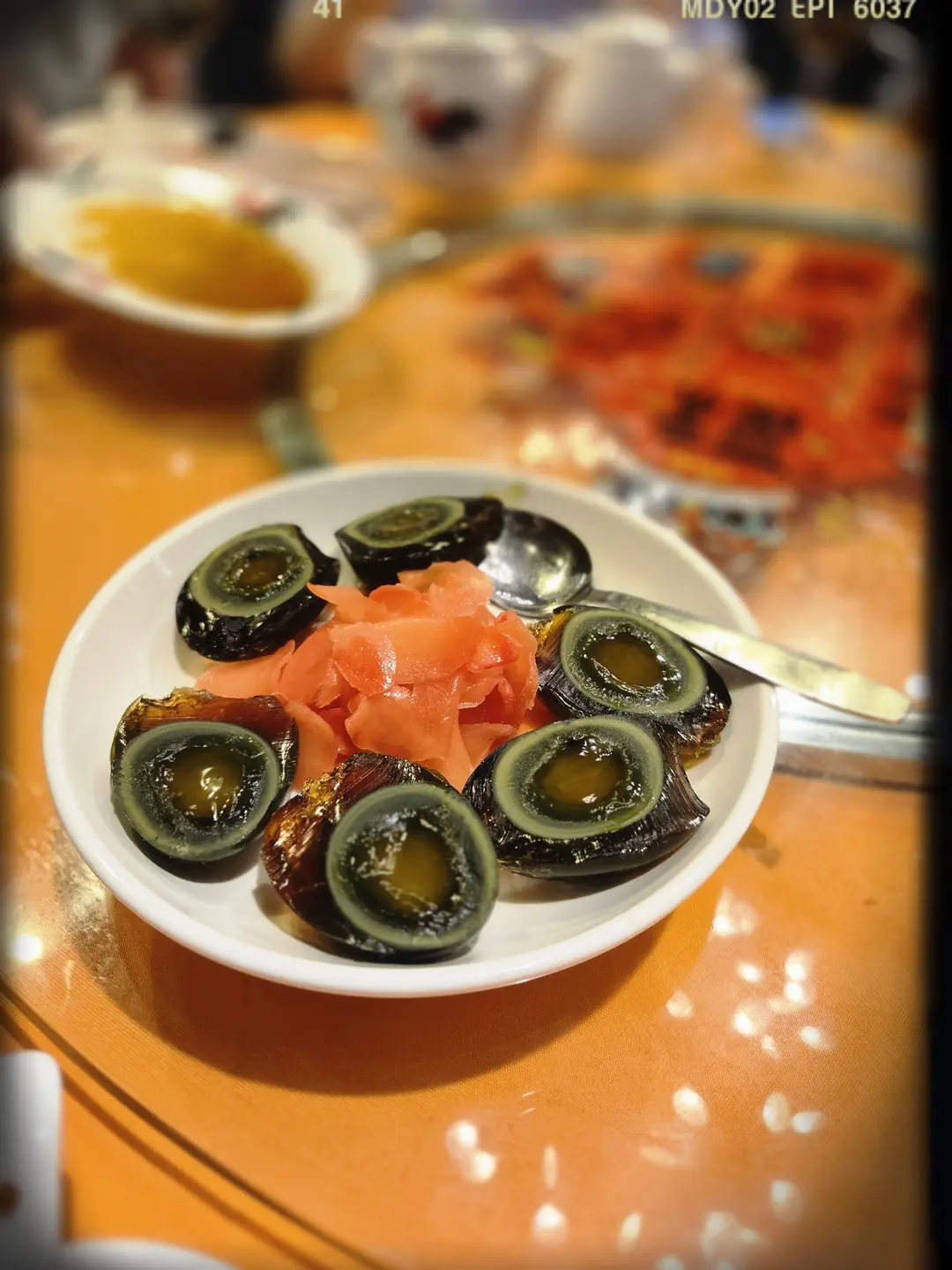 松花皮蛋配酸薑($16/半隻)