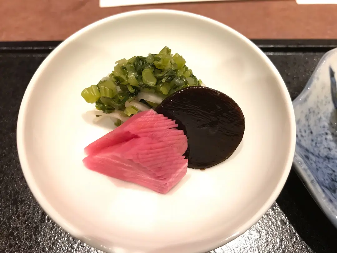 Pickles: radish, radish leaves, 昆布