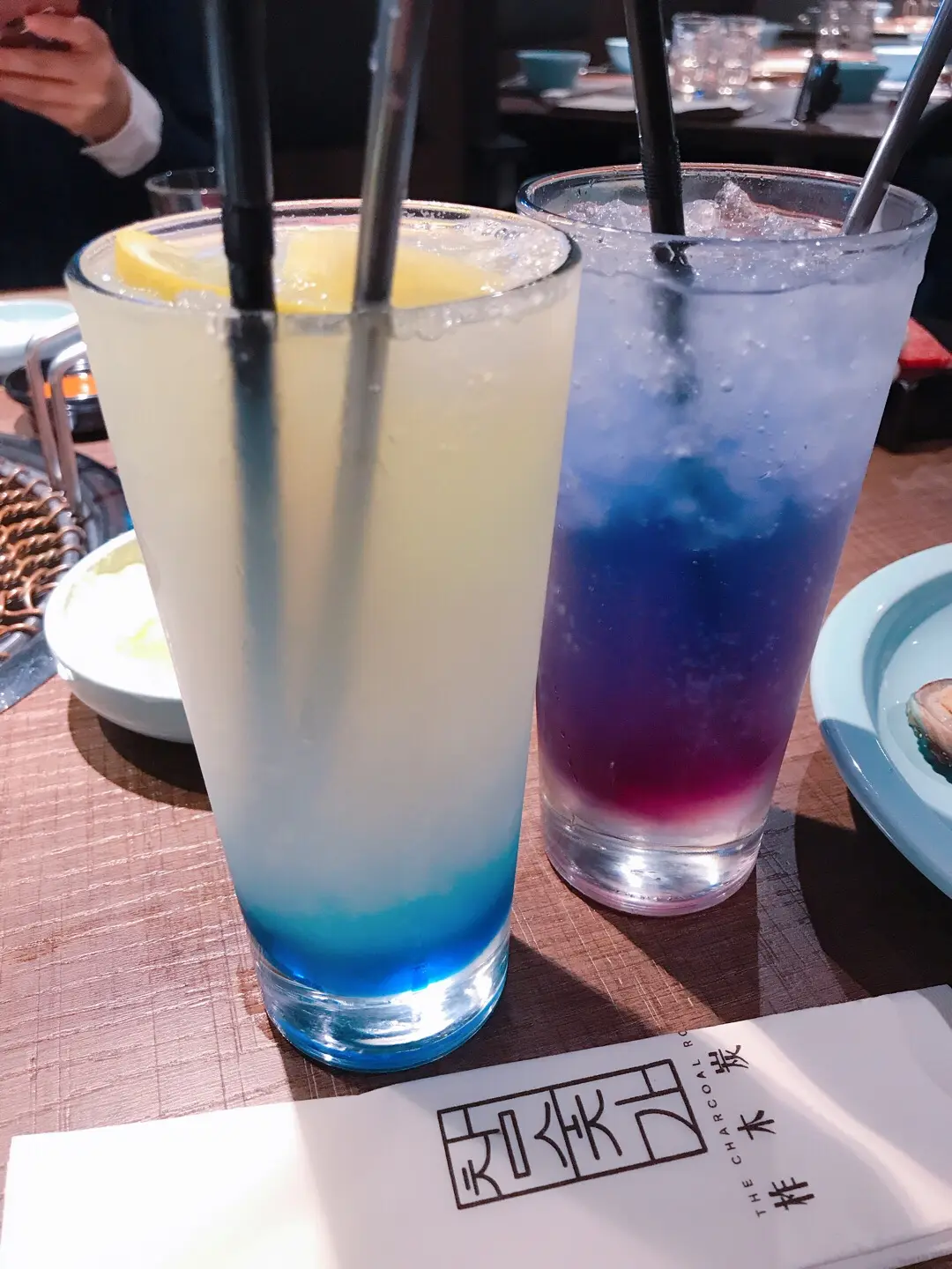 左: 忌廉鮮奶梳打; 右: 蝶豆花檸檬梳打