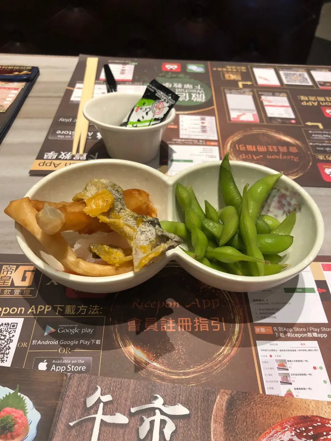 枝豆,咸蛋黃魚皮,春卷