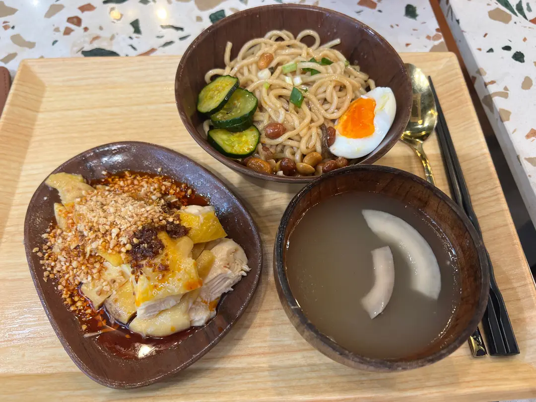椒麻口水雞配雞醬蔥拌麵