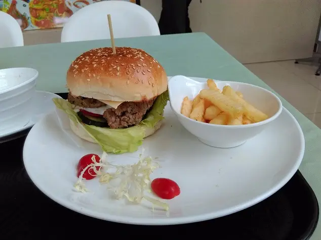 手打牛肉漢堡包配薯條