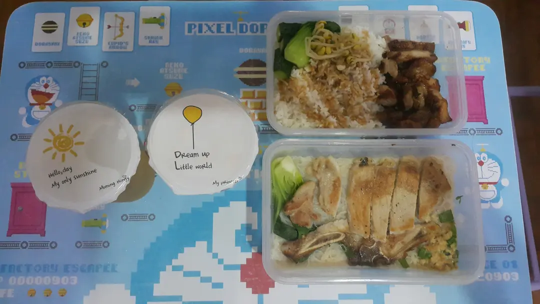 外賣煎雞扒飯及野菜豬扒新竹米粉