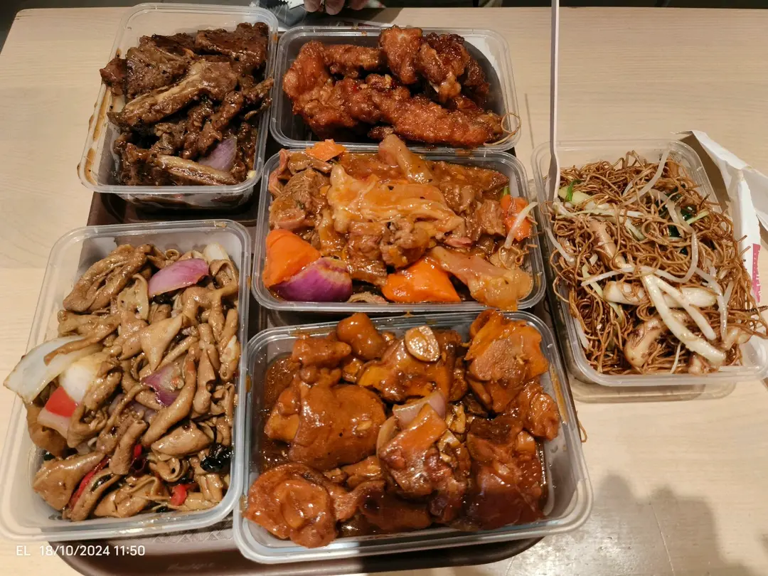 黑椒牛仔骨、豉椒鵝腸、泰式豬扒、紅蘿蔔牛腩、話梅豬手