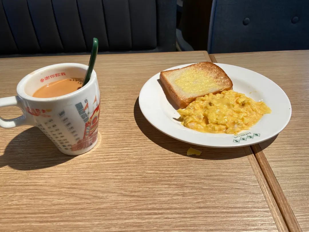 奶茶加多士加蛋