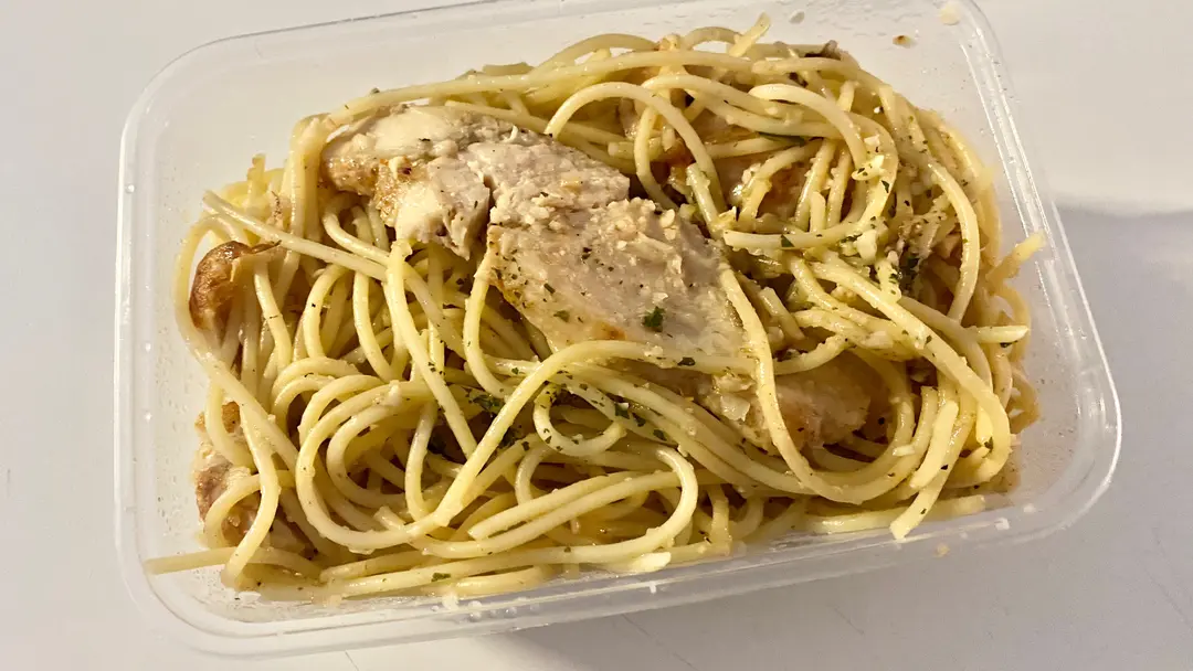 蒜香檻油雞胸意粉