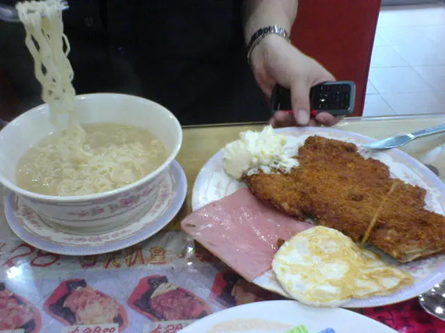 正~~~吉列豬扒火腿蛋+公仔麵+凍飲$22