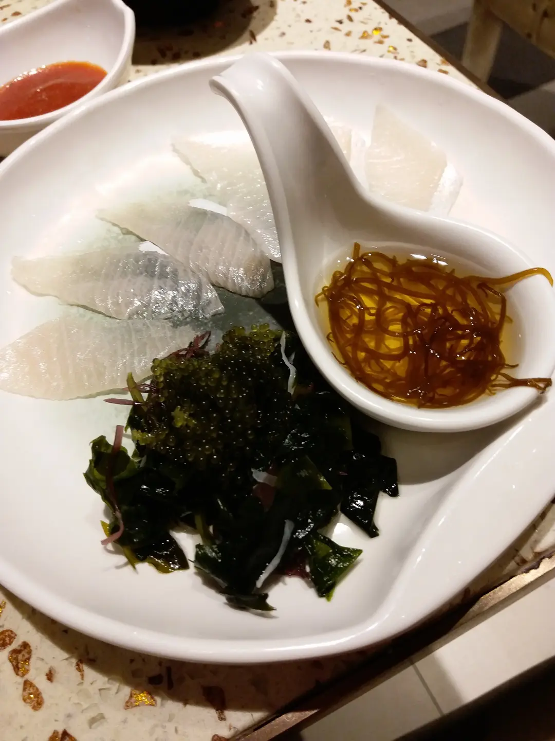 鱆紅薄切伴海葡萄(土佐酢水雲)