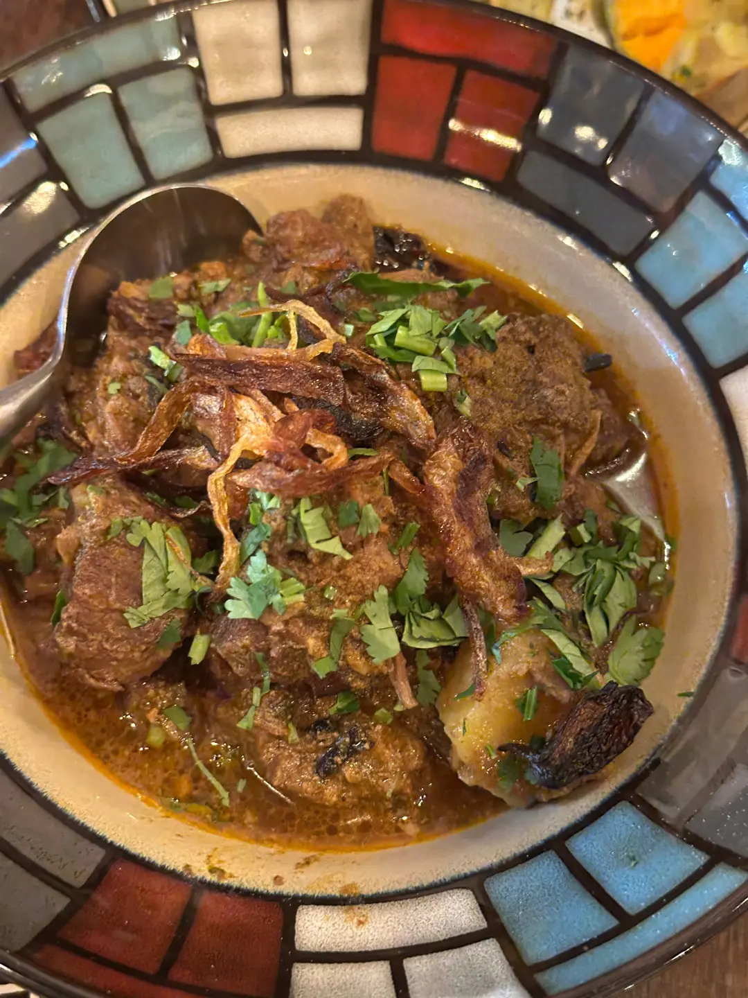 Kala bhuna - 5 hours slow-cooked beef, in a Bangladeshi- spiced reduced gravy 5小時慢烤卡拉牛肉