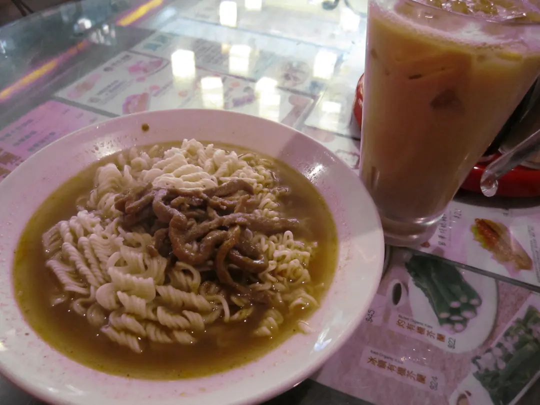 沙嗲牛肉絲公仔麵+凍奶茶