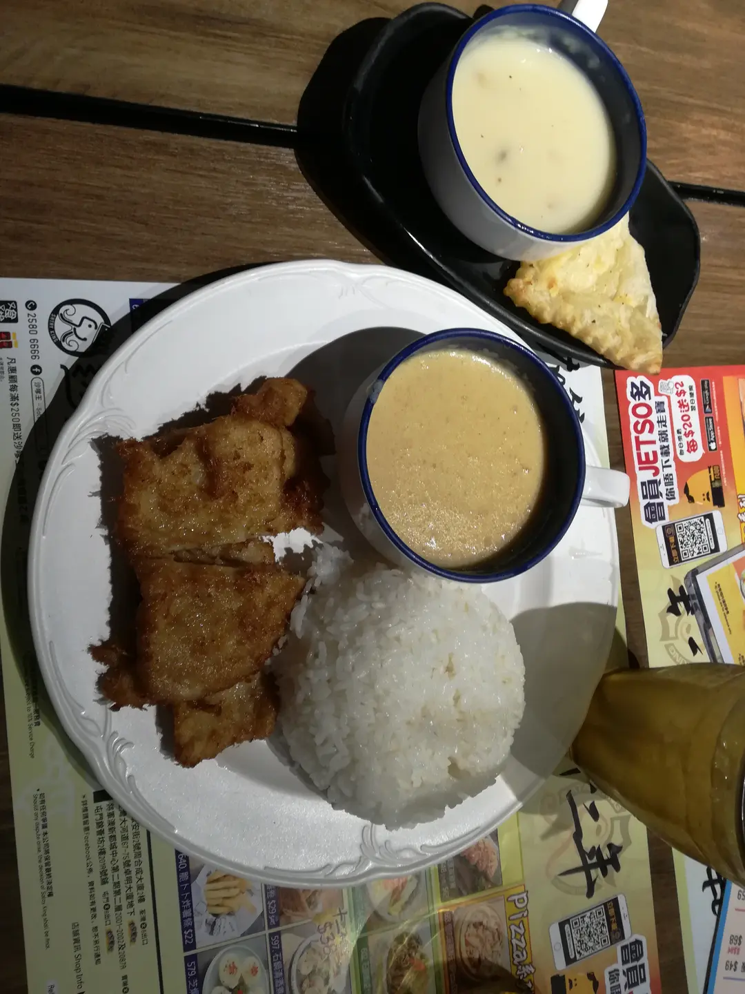 lemongrass pork chops with rice in white curry