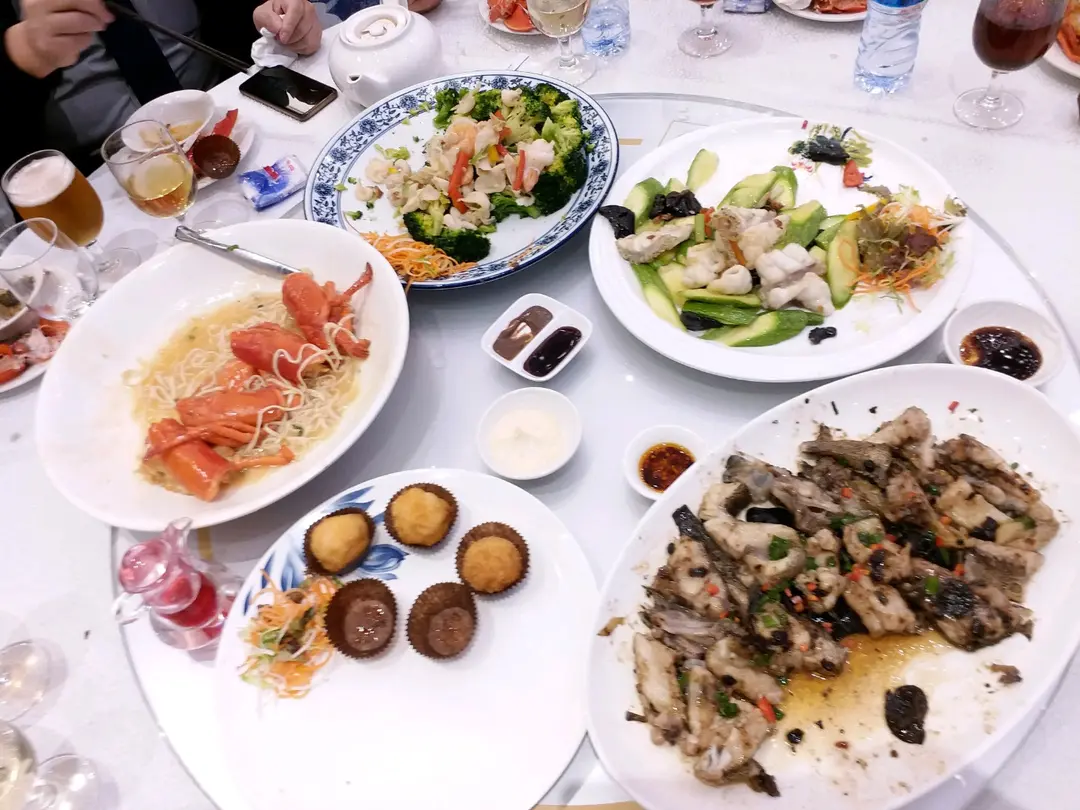炸百花球👍蒸班頭腩 頭骨多腩肉少👎 翠肉瓜炒班片👍 西蘭花大虾球蚌片👍