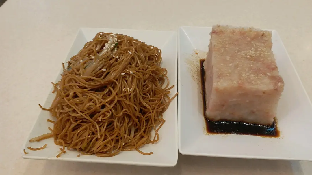 蒸蘿蔔糕,炒麵